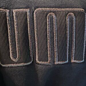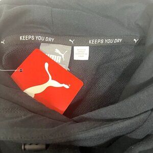 Cozy up in this women’s Puma "Elevated Logo Hoody W" in size Large. A black pullover hoodie featuring metallic ash embroidered logo, ribbed cuffs and hem, kangaroo pocket, and adjustable drawstring hood. New with tags and perfect for layering or casual everyday wear.
