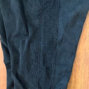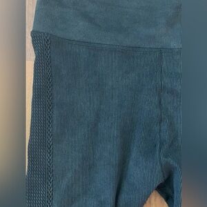 Offline by Aerie seamless ribbed stretch leggings. Wide waist band and detailed braiding on the side of the leggings (pictured). Color is ash black, meant to look a little distressed. Bought but never worn. Sz XL