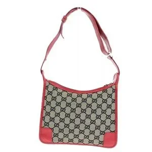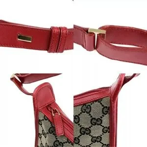 GUCCI Logo GG Pattern Shoulder Bag Canvas Leather Red Black Gold Italy 68HB984