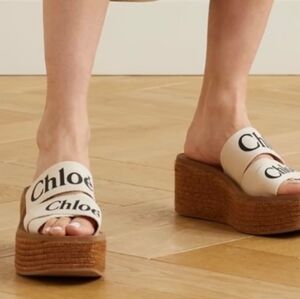 Chloe Women Woody Logo Platform Espadrille Slide Sandals EU39, US8