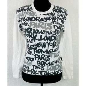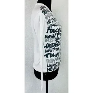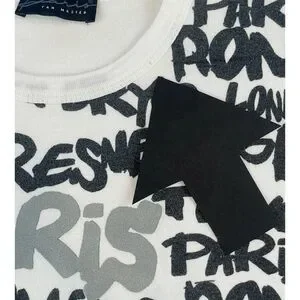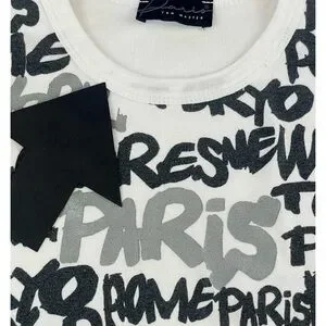 (Vintage) Yan Master Black/White/Silver Y2K Paris Name Print Long Sleeve Tee