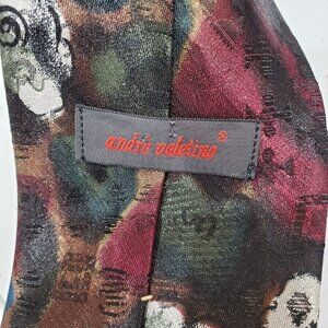 Andre Valetino Mens Dress Tie Burgundy Green Geometric Print Made in USA
