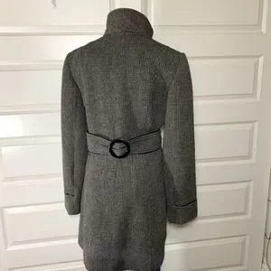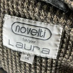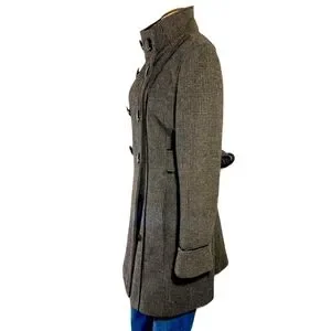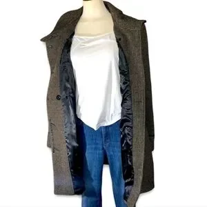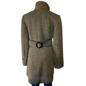 Novelti Pea Coat Wool Blend Brown Plaid Belted Chunky Double Breasted 14