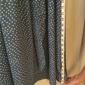 SHEIN dress size L, slate blue, polka-dot belted dress. Like new, maybe worn once. Elastic around wrist. See measurements in photos. Smoke-free, pet-free home.