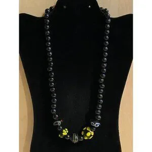Vintage Porcelain Beads Necklace With Funky Yellow Polka Dot Accents For Retro C