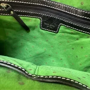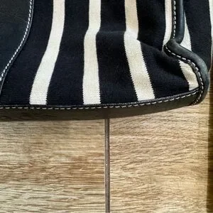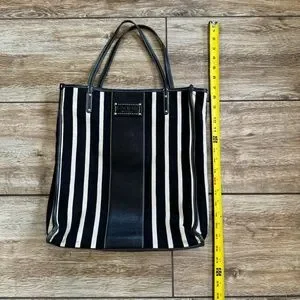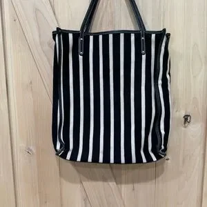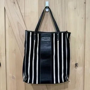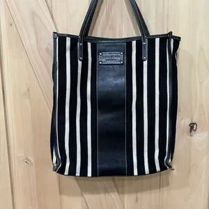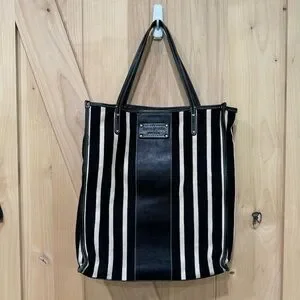 Kate Spade Griffen Tote Black Cream Stripe Cloth Leather Shoulder Bag