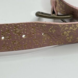 Gap Pink Genuine Cow Leather Belt w/ Gold Floral Pattern Sz XL