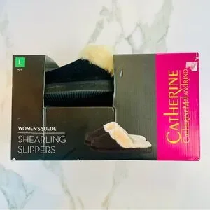 Catherine Malandrino Shearling Lined Genuine Suede Slippers Sz 9-11 Large NWB