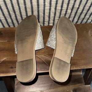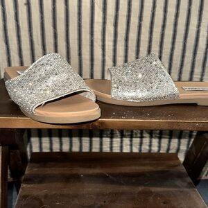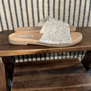 Steve Madden slip on rhinestone sandals . Only worn twice. Very clean and comfortable. Retail is $69. Size 6 1/2. Fabric upper and lining.