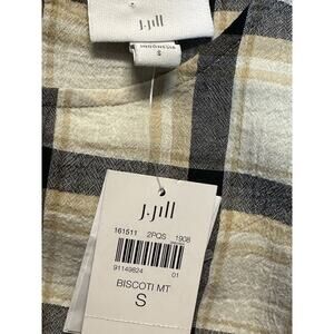 J. Jill Misses Sm Tan/Black/White Plaid Sleeveless Top w/Crossover Back-NWT Retail $60. Stylish crossover panel in back. Back neck button closure. Rounded hem. Bust Darts. See photos.