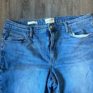 Medium wash high rise straight jeans by the brand Universal Thread. They are a slightly cropped length, they hit around the ankle. Size 18/34R. Smoke free and pet free home.