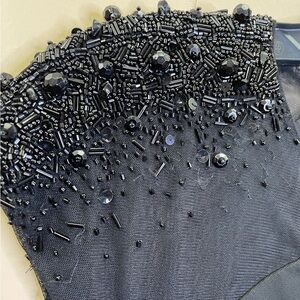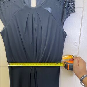 Badgley Mischka Embellished Cap Sleeve Sheath Evening Dress Black