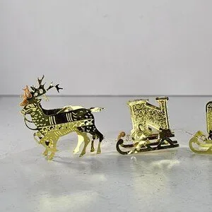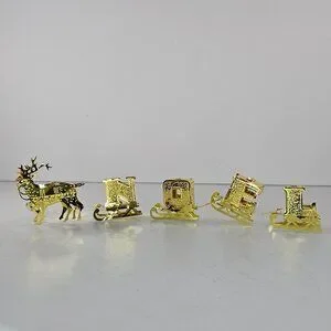 Oriental Trading Company Reindeer Noel Sleigh Gold Candle Holder