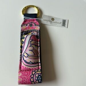 Simply Southern chapstick holder key fob. Brand new with tags. Pink paisley with yellow and navy accents. Inside is navy with message “make today amazing” written in pink.