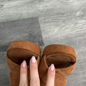 Worn suede Tory Burch espadrille sandal, tan size 7.5