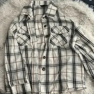 off-white, Black, and tan button up flannel shirt Shein size s worn couple times-great condition