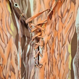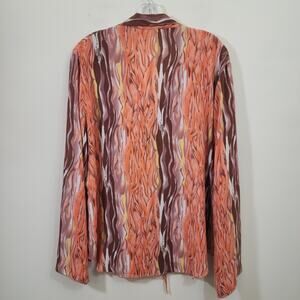 Vintage Caviar flame print lace up front long sleeve blouse woman's size XL