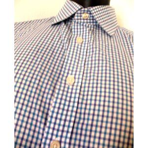 Charles Tyrwhitt Shirt Men Large 16.5/33 Blue Slim plaid Long Sleeve Button.