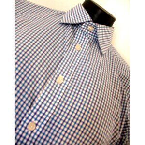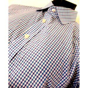 Charles Tyrwhitt Shirt Men large16.5/33 Blue ExtraSlim plaid Long Sleeve Button