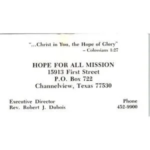 Rev Robert J. Dubois Hope for All Mission Channelview TX Business Card SD8-B4