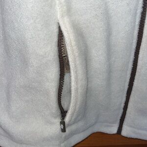 Excellent Used Condition Ruff Hewn Reversible Vest. Side pockets on the white fuzzy side. No pockets on the brown. Brown has a micro egg crate like look. Very warm for those chilly evenings and fall days. Measurements are length is 23”, armpit to armpit 21”. Non smoking home