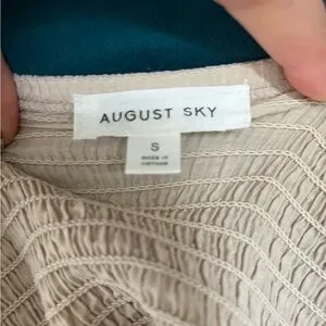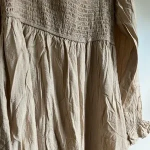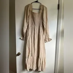 August Sky Tan/Cream Smocked Long Sleeve Maxi Dress NWOT