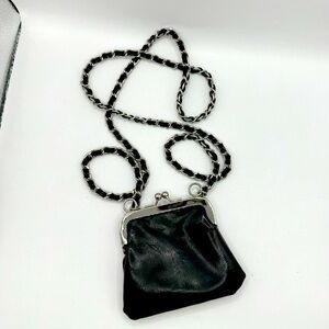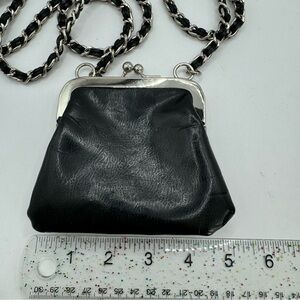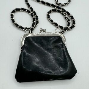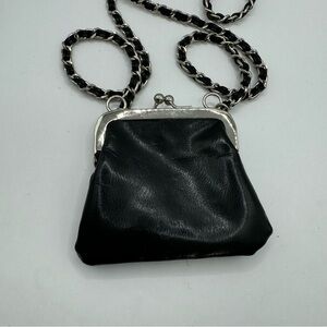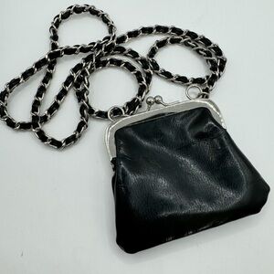 Express black faux leather kiss lock chain strap small crossbody pouch bag