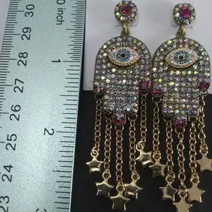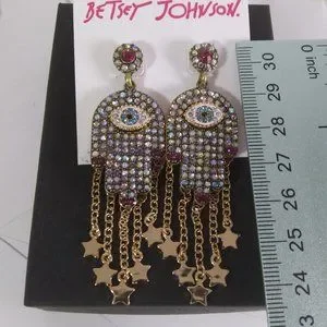NEW Betsey Johnson hamasa, evil eye , stars earrings very cool . ~ 3" long at it's lowest dangling star see above photos for what was measured .These are so pretty and unique . Wear these and protect yourself from the evil eye . These are new retails for 52.00 no original box . Gypsy, wiccan, boho, festival , hippie