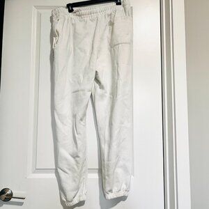 Ribbed bottom cuff and waistband, drawstring at waist.