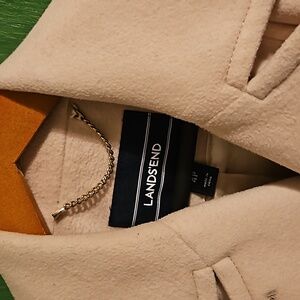 LANDS END Women’s Peacoat in size 4P. Excellent condition. Color is an off white Creme to Light Beige or Camel with a golden lining. It's an elegant design for any occasion. Heavyweight 50/50 wool poly blend. dry clean only.