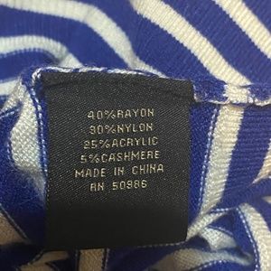 Jeanne Pierre cashmere blend nautical stripes boatneck sweater. Sz. L