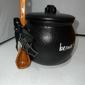 Rae Dunn Beware Halloween Potion Sugar Bowl Broom Spoon Canister Cauldron