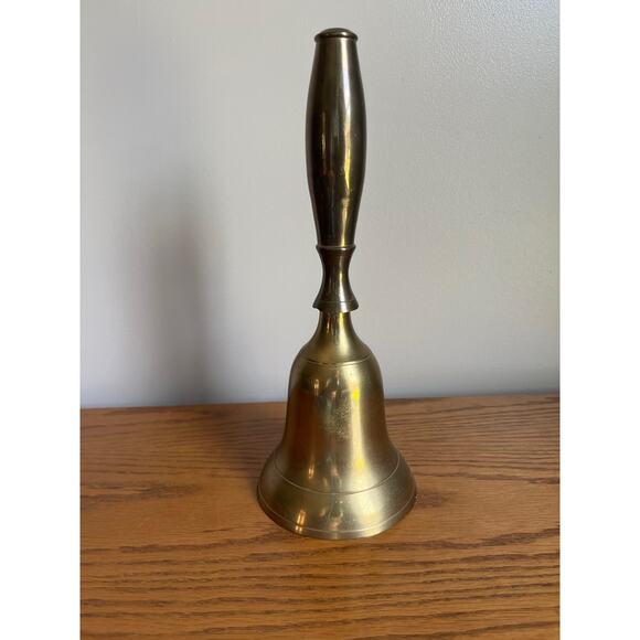 Vintage Brass Hand Bell Original Patina Large 11.5" Dinner School Captains
