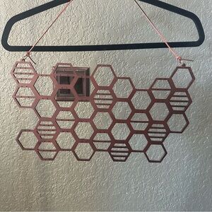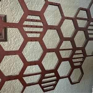 Hanging honeycomb earring display in walnut color