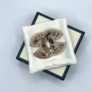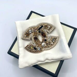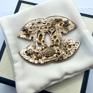 CHANEL vintage brooch with authenticity stamp it’s missing a couple of stones but can be replaced.