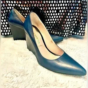 San Marina Navy Wedge Pointed Toe Heels Pump