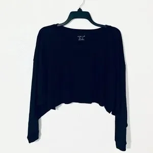 Urban Outfitters Out From Under cropped sweater in black. Long sleeves, drop shoulders, oversized fit. Material is a lightweight comfy material made from a poly/viscose/elastane blend. Size is a women’s extra small, measures appr. 27”ptp 16”length so it could definitely fit a medium comfortably. New without tags, retails for $49.