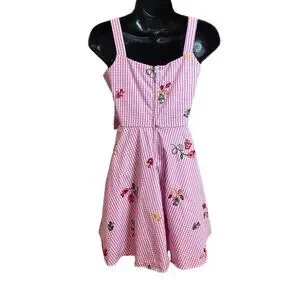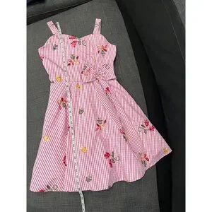 Vintage Y2K Rare Editions Pink White Gingham Fit and Flare Embroidered Dress