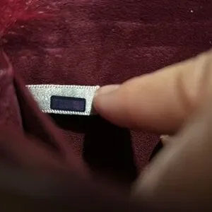 Suede interior is clean of holes, scratches and stains. Three interior compartments. Interior suede flap has minimal wear from being folded over to close bag (pics #7-8). Hologram tag is in tact. Hardware is shiny with faint glitter design. No corner wear.