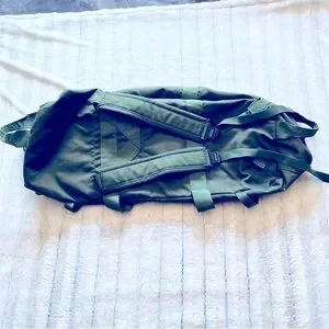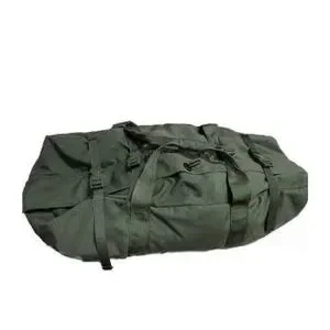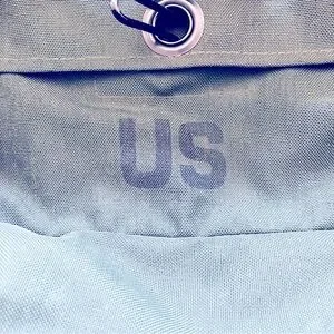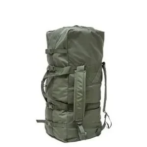 Army issued duffel bag in good condition. Has zip closure, and buckles. Has two shoulder carry straps. Has a handle on each end. One end has an area for packing list or name insert. Waterproof lining. Very durable.