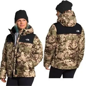THE NORTH FACE WOMEN’S BALHAM DOWN PUFFER JACKET INSULATED CAMOU HOODIE