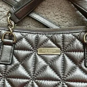 Kate Spade silver quilted leather handbag/crossbody bag. Signs of wear on bottom corners of bag. See photos. Removable crossbody strap. No rips/holes. Overall good condition!