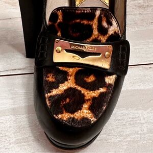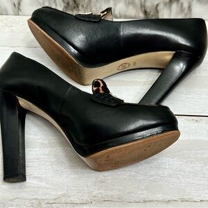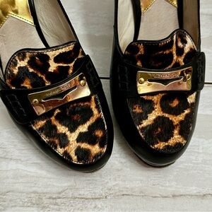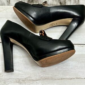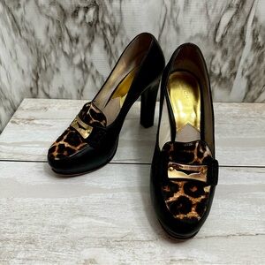 Michael Kors Womens Sz 8 1/2 M Tierlyn Blk Platform Heel Shoes Leopard Print Toe