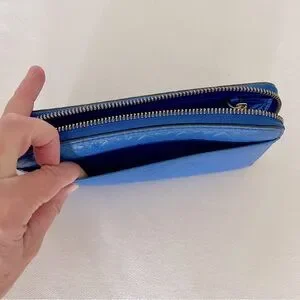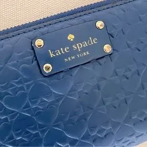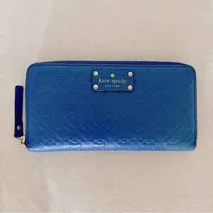Kate Spade Penn Place Embossed Zip-around wallet in very good used condition. Like-new on the inside with zip coin pocket, 12 card slots, and divider pockets. Outside slide pocket on back. Gold hardware.