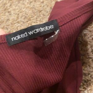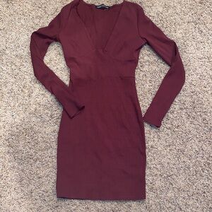 naked wardrobe maroon slimming bodycon long sleeves v neck large