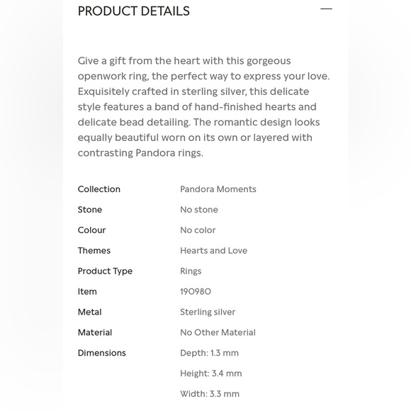 Give a gift from the heart with this gorgeous openwork ring, the perfect way to express your love. Exquisitely crafted in sterling silver, this delicate style features a band of hand-finished hearts and delicate bead detailing. The romantic design looks equally beautiful worn on its own or layered with contrasting Pandora rings.