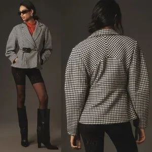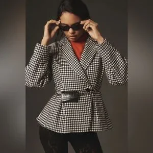 New Anthropologie Maeve Houndstooth Sculpted Hourglass Blazer