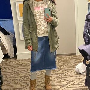 Size S; very comfy and stylish🎀🐆; can be worn with a jean skirt and cargo sweater for layering🤍