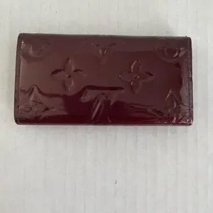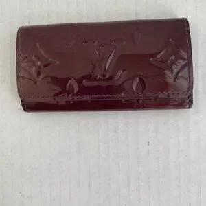Beautiful burgundy LV key holder. All hooks are present. Leather is in good condition. One corner has slight wear and there is some fading on the metal of the key holders, see pictures. Snap closes tight and holds. Serial number TS4121