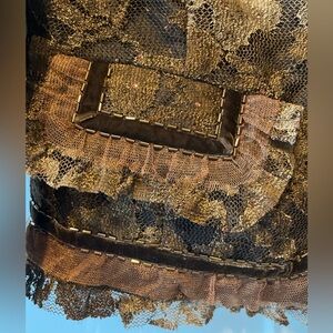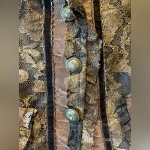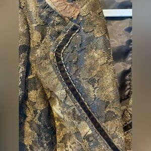 Simon Chang evening blazer. Gorgeous. Has netting, beading, lace, velvet in hues of browns, tans, golds. Pretty buttons. Size 10, fits like a medium.